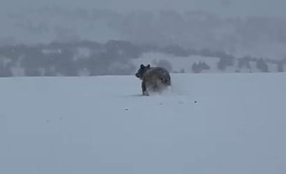 Sivas'ta bir vatandaş, aracıyla ilerlerken kış uykusuna yatmayan bir ayının görüntülerini kaydetti. Ayı, bir süre görüntülendikten sonra kaçarak gözden kayboldu.
