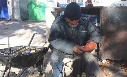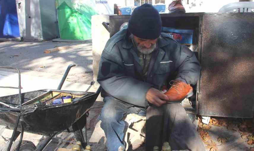 Mersin'in Mut ilçesinde 35 yıldır ayakkabı boyacılığı yaparak geçimini sağlayan Bayram Batı (67), kış mevsiminde soğuk havaya rağmen işine devam ediyor.