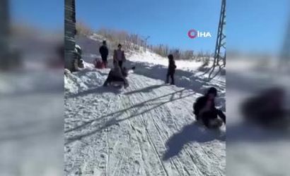 Erzurum’un Narman ilçesine bağlı Güvenlik köyünde, iki kadın öğretmen, karne dağıtımından önce öğrencileri için büyük bir etkinlik gerçekleştirdi. Okul öncesi öğretmeni Fatma Yaman ve okul müdürü Işıl Erbaşlı, öğrencileriyle birlikte kızaklarla ve poşetlerle kayarak keyifli anlar yaşadı.