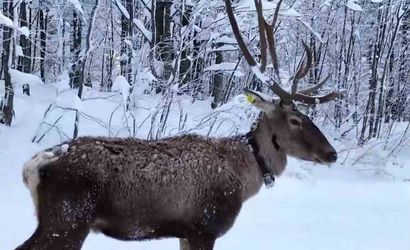 Kocaeli'nin kış turizmi ile tanınan ilçesi Kartepe, karla kaplı ormanlarında doğal yaşam alanlarına yerleştirilen kızıl geyiklerden birini dron ile görüntüledi.