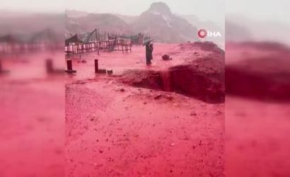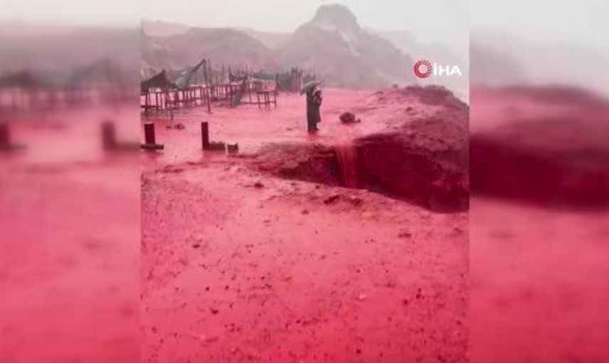 İran’ın güneyindeki Hürmüzgan eyaletinde yer alan Kızıl Sahil, sabah saatlerinde meydana gelen etkili yağışların ardından deniz suyunun geçici olarak kızıl renge döndüğüne tanıklık etti. Bu doğal olay, bölgedeki demir oksit açısından zengin kırmızı toprağın denizle buluşması nedeniyle gerçekleşti.