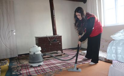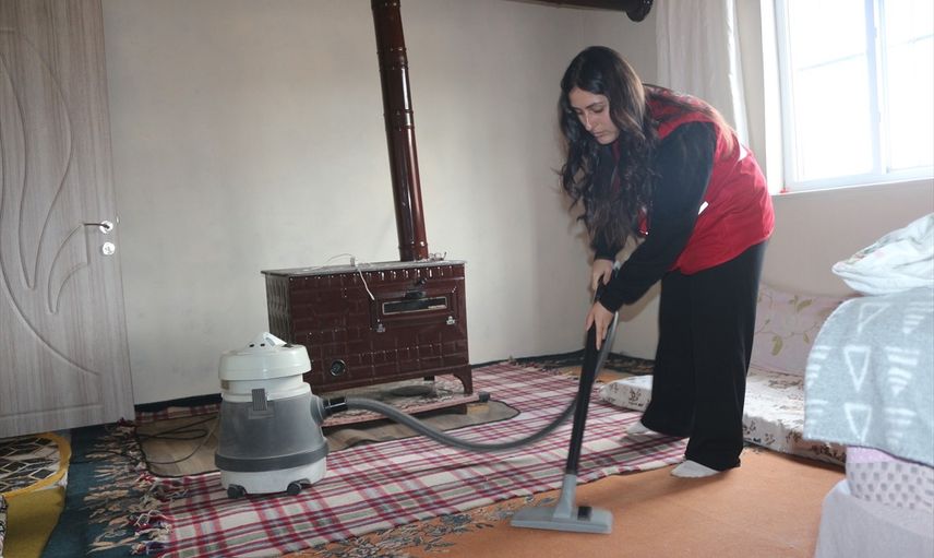 Ağrı'nın Doğubayazıt ilçesinde, üniversite öğrencisi Kızılay gönüllüleri, yalnız yaşayan 88 yaşındaki Karakaş Kaya'nın evinin temizliğini yaptı.