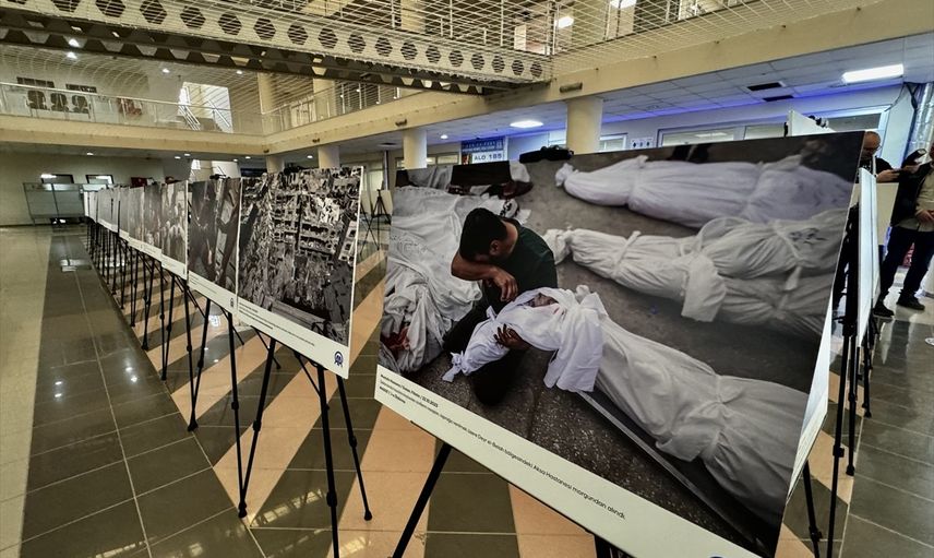 Kocaeli'nin Gölcük ilçesinde, Anadolu Ajansının (AA) İsrail'in Gazze'de işlediği suçları tüm açıklığıyla ortaya koyan, temel delil niteliğindeki "Kanıt" kitabında bulunan fotoğrafların yer aldığı sergi açıldı.