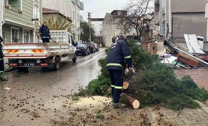 Çevredeki vatandaşların ihbarı üzerine itfaiye ve belediye ekipleri olay yerine sevk edildi. İtfaiye ekipleri, devrilen ağacı motorlu testere ile keserek parçalara ayırdı. Yapılan çalışmanın ardından yol yeniden trafiğe açıldı.
