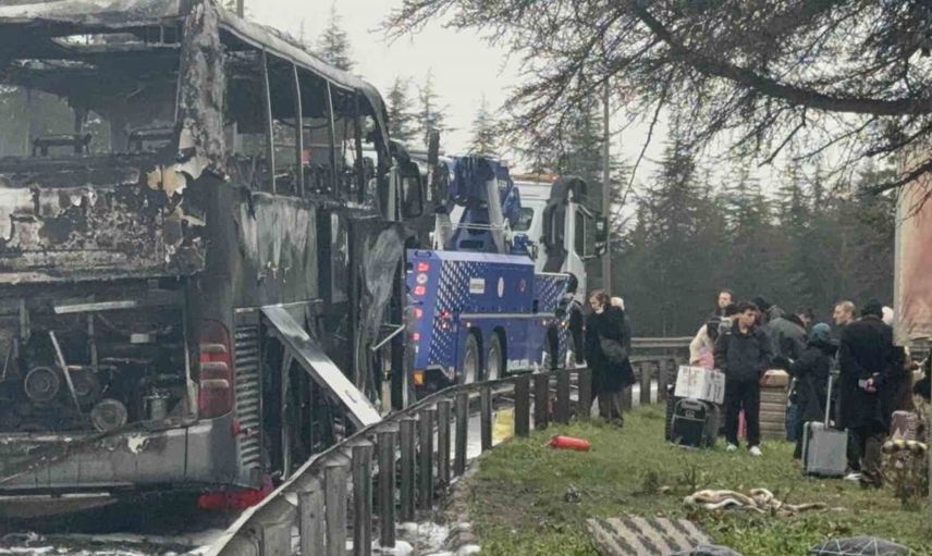 KOCAELİ’DE YOLCUNUN SEYİR HALİNDEYKEN ALDIĞI YANIK KOKUSUNU FARK EDEREK DURUMU GÖREVLİLERE BİLDİRMESİ, ŞEHİRLER ARASI YOLCU OTOBÜSÜNDE YAŞANABİLECEK OLASI BİR FACİAYI ÖNLEDİ. YOLCULARIN TAHLİYE EDİLMESİNİN ARDINDAN ÇIKAN YANGINDA OTOBÜS HURDAYA DÖNDÜ.
