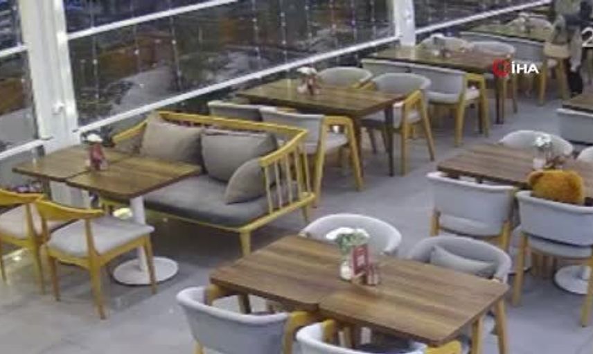 Sürücü S.E.U. tarafından kullanılan 06 KYY 38 plakalı Audi marka araç, aniden yol kenarındaki kafeteryaya daldı. O esnada, kafeteryaya gelen 2 müşteri masasına oturmak üzereyken kaza yaşandı. Bu iki kişi, kazayı neredeyse saniyelerle atlatmayı başardı. O anlar, kafeteryanın güvenlik kamerasına yansıdı.