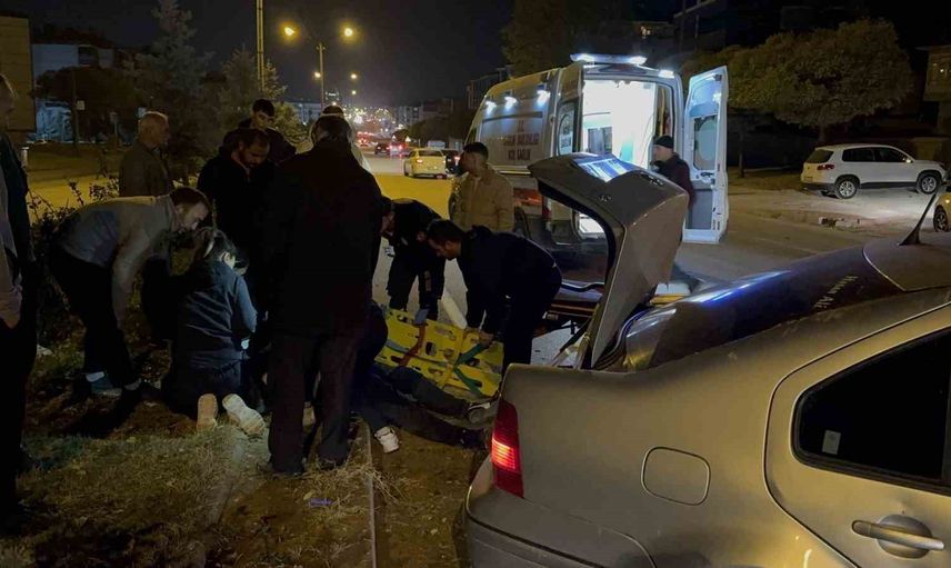 KONYA’NIN KULU İLÇESİNDE KONTROLÜNDEN ÇIKMASI SONUCU REFÜJE ÇARPAN OTOMOBİLİN SÜRÜCÜSÜ YARALANDI.