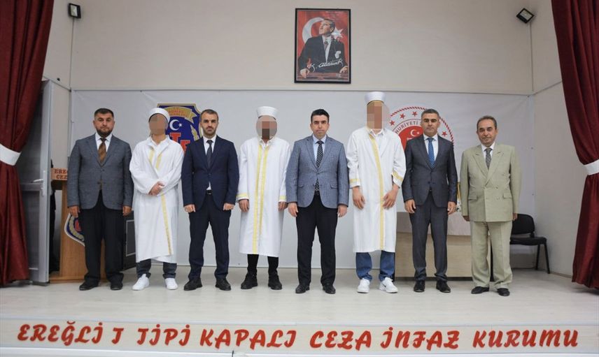 Konya'nın Ereğli ilçesindeki T Tipi ve Açık Ceza İnfaz Kurumu'nda hafızlık eğitimi alan üç hükümlü için bir icazet töreni yapıldı.