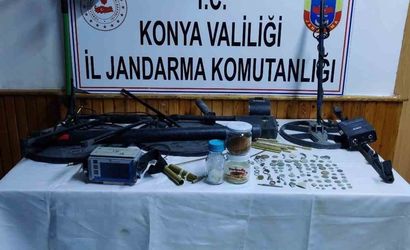 Konya’nın Ereğli ilçesinde jandarma ekipleri tarafından gerçekleştirilen operasyonda, çeşitli dönemlere ait tarihi sikke ve objelerin bulunduğu bir çalışma yapıldı.