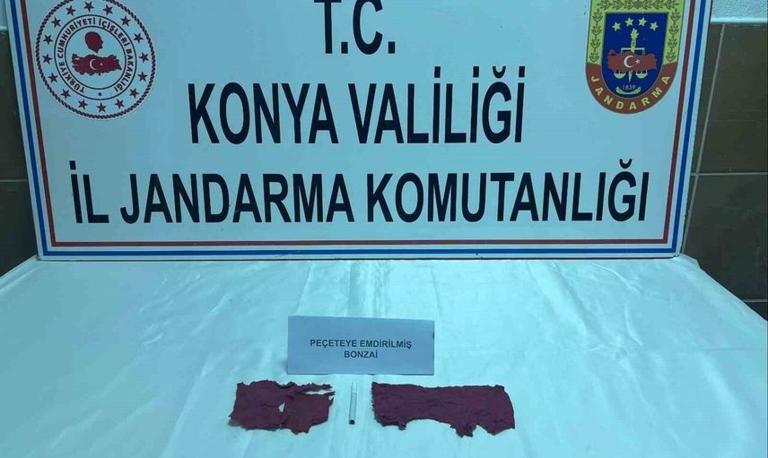 KONYA’DA JANDARMA EKİPLERİ 4 ŞAHSIN ÜZERİNDE VE ARAÇLARINDA YAPILAN ARAMA SONUCUNDA BİN 50 İÇİMLİK PEÇETEYE EMDİRİLMİŞ SENTETİK BONZAİ ELE GEÇİRDİ.