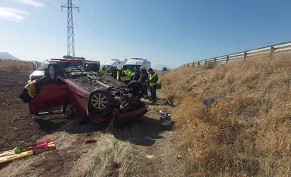 Konya'nın Seydişehir ilçesinde meydana gelen kazada, şarampole yuvarlanan otomobilde aynı aileden bir kişi hayatını kaybederken, iki kişi yaralandı.