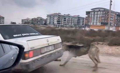 KÖPEĞİ ARACIN ARKASINA BAĞLAYARAK SEYRETTİ