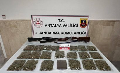Operasyon sırasında, 16 kilo 880 gram skunk uyuşturucu maddesi, 2 tüfek ve 1 hassas terazi ele geçirildi.