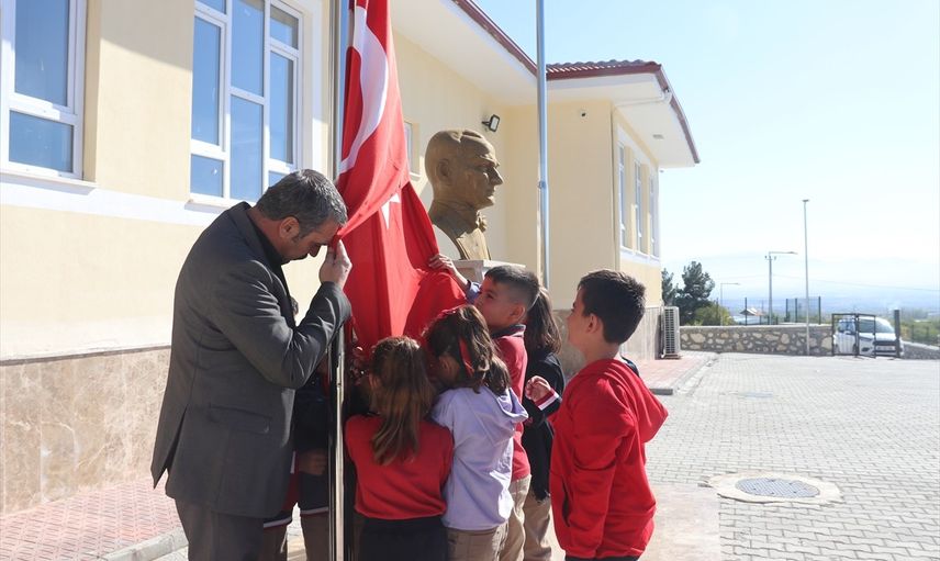 Malatya'nın Akçadağ ilçesindeki Güzyurdu Vestel Erdi Canbay İlkokulu'nda eğitim gören öğrenciler, Türk bayrağı ve vatan sevgisini uygulamalı olarak öğreniyor.