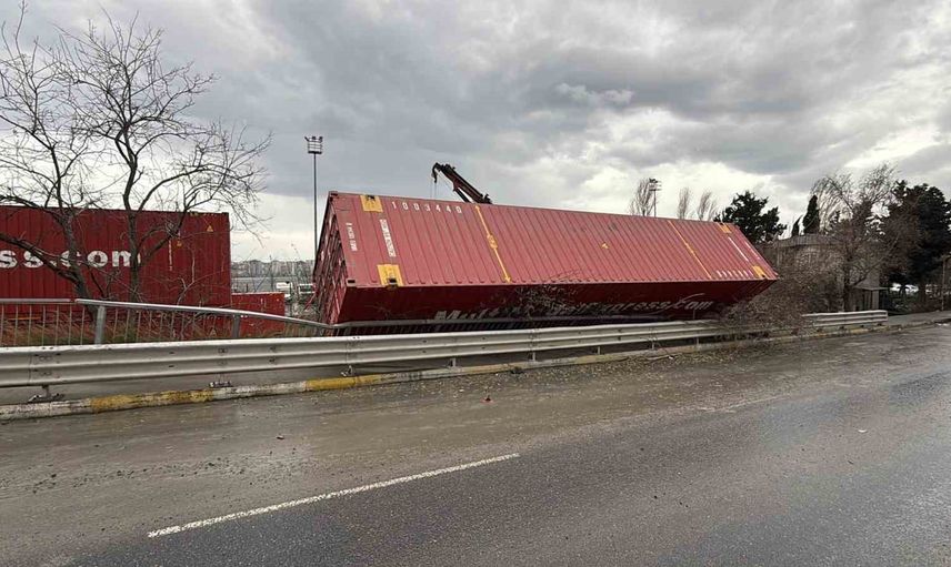 Küçükçekmece Halkalı'da yer alan eski gümrük sahasında, şiddetli rüzgar etkisini artırarak devam etmektedir. Bu olumsuz hava koşulları sonucunda, bir dizi konteynır devrilmiştir.
