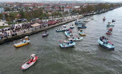 Sakarya'nın Karasu ilçesinde, Gazze'ye insani yardım ulaştırmak için yola çıkan ve İsrail'in saldırısına uğrayan Küresel Sumud Filosu'na destek için bir araya gelen balıkçılar, Karadeniz'e açıldı. Sakarya Nehri'nin Karadeniz'e döküldüğü yerden denize açılan balıkçıları, vatandaşlar Türk ve Filistin bayraklarıyla alkışlayarak karşıladı.