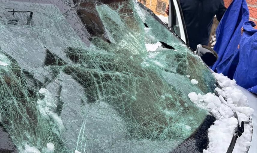 Siirt’in Kurtalan ilçesinde, çatıdan düşen bir kar kütlesi park halindeki bir otomobili kullanılmaz hale getirdi.
