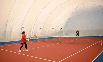 Kuşadası Belediyesi, Kuşadası Tenis Kulübü'nde inşası tamamlanan balon kortunu sporseverlerin kullanımına sundu. Bu yeni spor alanı, kış aylarında olumsuz hava koşullarına karşı oyunculara güvenli ve konforlu bir oyun deneyimi sağlıyor.