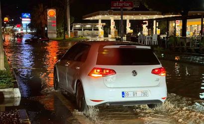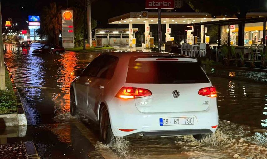 Aydın’ın Kuşadası ilçesinde etkili olan sağanak yağış, 15 dakika içinde yolları göle dönüştürdü. Yağış, araçların su birikintileri içinde mahsur kalmasına yol açtı.
