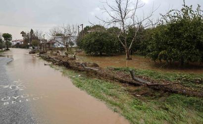 Deniz Caddesi üzerindeki meyve bahçeleri, meydana gelen taşkın sonucu göle döndü. Bahçeleri koruyan çitler yerlerinden sökülürken, narenciye ve şeftali ağaçları su altında kaldı.