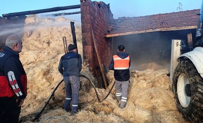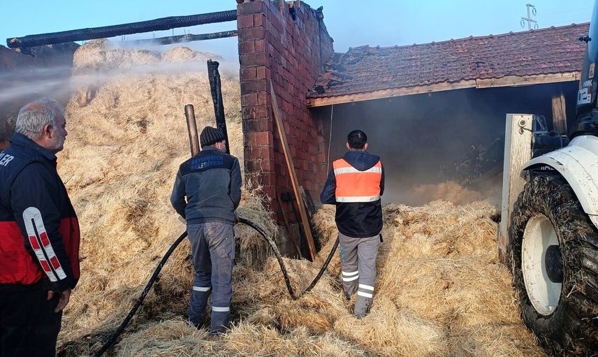 İtfaiye ekipleri, yangına müdahale ederken ahırda bulunan saman balyalarını kepçe ve kamyonlarla güvenli bir alana taşıdı. Yangın sonucunda ahırda maddi hasar meydana geldi.