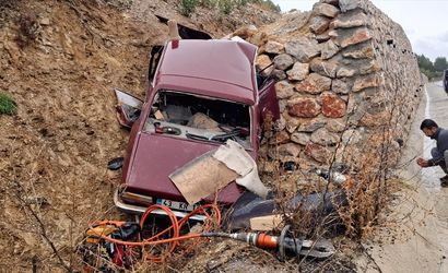 Kütahya'nın Emet ilçesinde, istinat duvarına çarpan otomobilin sürücüsü ile eşi hayatını kaybetti.