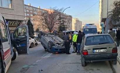 Kütahya'da, sürücüsünün kontrolünü kaybetmesi nedeniyle park halindeki araçlara çarpan bir otomobil takla attı. Kaza, Meydan Mahallesi Mithatpaşa Caddesi üzerinde gerçekleşti.