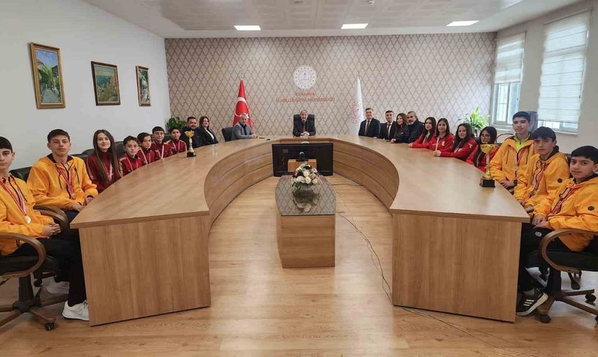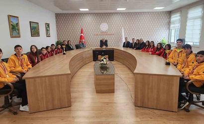 Bu anlamlı başarıların ardından, her okuldan 5’er öğrenci olmak üzere toplam 15 öğrenci, 4 öğretmen ve 3 idareci Mustafa Yılmaz’ı ziyaret ederek, elde ettikleri başarılar ve gelecek hedefleri hakkında bilgi verdiler. Müdür Yılmaz, öğrencileri ve öğretmenleri tebrik ederek Türkiye Finalleri’nde başarılar diledi.