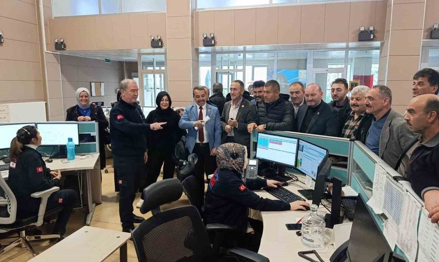 KÜTAHYA MUHTAR DERNEĞİ BAŞKANI İSMAİL ARI VE MAHALLE MUHTARLARI, 112 ACİL ÇAĞRI MERKEZİ’Nİ ZİYARET EDEREK MERKEZDE YÜRÜTÜLEN ÇALIŞMALAR HAKKINDA BİLGİ ALDI.