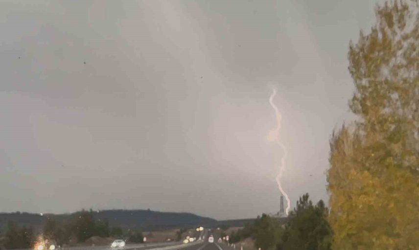 Eş zamanlı olarak gökyüzünde çakan şimşekler ve yıldırım düşmeleri, atmosferi adeta bir görsel şova dönüştürdü. Uzun yol şoförü Kadir Dönmez, bu durumu ilginç bir şekilde yorumladı.