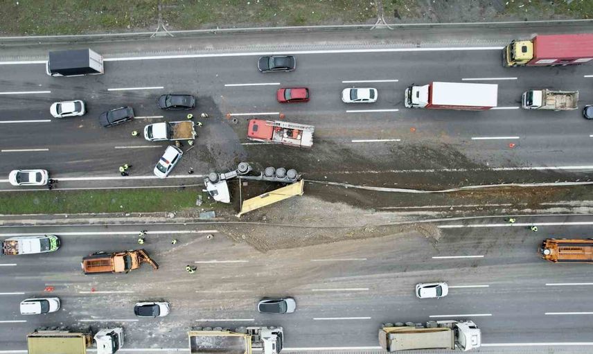 34 ZR 7570 plakalı hafriyat kamyonu, bilinmeyen bir sebepten ötürü kontrolünü kaybederek yolun sol şeridine yan yatarak devrildi. Bu kaza sonucunda otoyolunAnkara istikametindeki 4 şeritten 3'ü, İstanbul istikametinde ise 2 şerit trafiğe kapandı. Otoyolda ciddi bir trafik yoğunluğu meydana geldi.