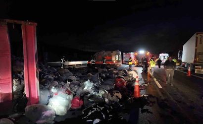 KUZEY MARMARA OTOYOLU’NUN ÇEKMEKÖY MEVKİİ ANKARA İSTİKAMETİNDE MEYDANA GELEN TRAFİK KAZASINDA, İDDİAYA GÖRE BİR TIRIN ARKADAN ÇARPTIĞI KAMYONET DEVRİLDİ. KAZANIN ETKİSİYLE TEKSTİL ÜRÜNLERİ TAŞIYAN KAMYONETTEKİ TORBALAR YOL ÜZERİNE SAVRULDU.