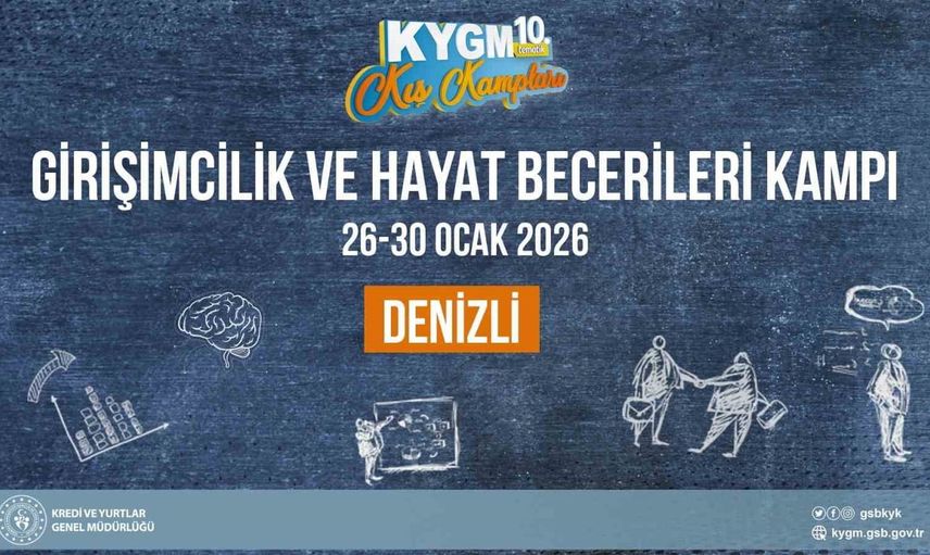 Gençlik ve Spor Bakanlığı, Kredi ve Yurtlar Genel Müdürlüğü tarafından, yurtlarda kalan üniversite öğrencilerinin kişisel ve sosyal becerilerini geliştirmek amacıyla 26-30 Ocak 2026 tarihleri arasında Denizli'de "Girişimcilik ve Hayat Becerileri Kampı" gerçekleştirilecek.