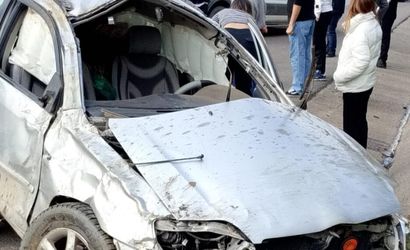 ANADOLU OTOYOLU DÜZCE GEÇİŞİNDE LASTİĞİ PATLAYAN OTOMOBİL BARİYERE ÇARPARAK TAKLA ATTI. KAZADA OTOMOBİLDE BULUNAN 2 KİŞİ YARALANDI.
