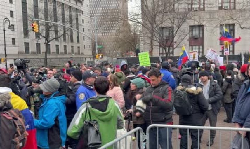 Manhattan bölgesindeki Güney Bölge Federal Mahkemesi önünde toplanan, aralarında Venezuelalıların da bulunduğu bir grup, "ABD, Latin Amerika ve Karayiplerden çekil", "Özgür Maduro" ve "Trump gitmeli" yazılı pankartlar taşıdı. Protesto sırasında mahkeme çevresindeki güvenlik önlemleri artırıldı.
