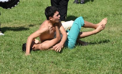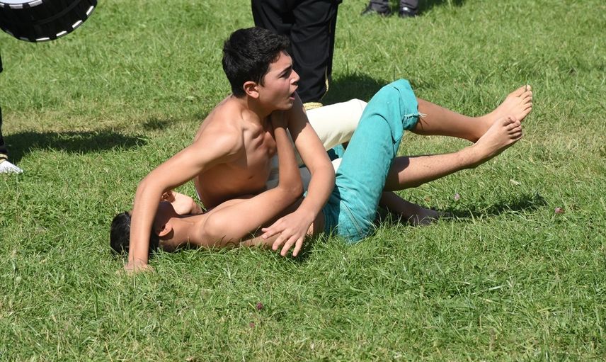 Down sendromlu çocukların sergilediği güreş gösterisinin ardından, 20. Uluslararası Turgut Özal Karakucak Güreşleri müsabakaları başladı.