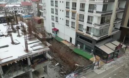 İSTİNAT DUVARI ÇÖKEN BİNA HAVADAN GÖRÜNTÜLENDİ