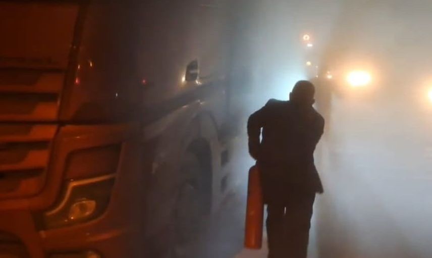Durumu gören akaryakıt istasyonundaki vatandaşlar, yangın tüpleriyle yangına ilk müdahaleyi gerçekleştirdi. Olay yerine kısa sürede ulaşan itfaiye ekipleri, araçta soğutma çalışmaları yaptı. Yangın nedeniyle tırda maddi hasar meydana geldi.