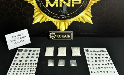 Malatya'da, torbacı olarak adlandırılan sokak satıcılarına yönelik düzenlenen kapsamlı bir operasyonda, önemli miktarda uyuşturucu madde ile tarihi eser niteliğinde sikkeler ele geçirildi. İl Emniyet Müdürlüğü Narkotik Suçlarla Mücadele Şube Müdürlüğü ekiplerinin yürüttüğü çalışmada, bir iş yerinde ve şüphelinin üzerinde yapılan aramalarda toplamda 167 gram kokain ile 116 adet tarihi eser niteliğinde sikke bulundu.
