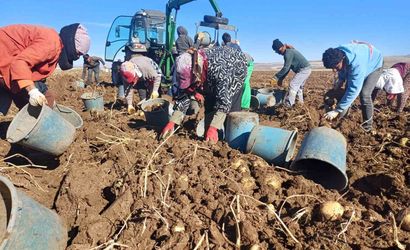 İbrahim Gezener tarafından yaklaşık 100 dönümlük bir araziye ekilen patatesler, sağlanan yüksek verimle dikkat çekti. Batman ilinden gelen 20 kişilik işçi ekibi, hasat çalışmalarını özenle sürdürüyor.