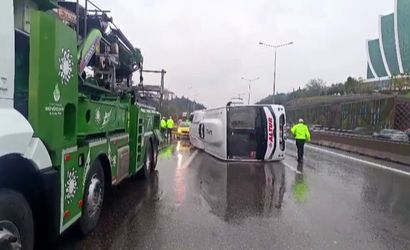 Yağışların etkisiyle kayganlaşan yolda, havalimanı çalışanlarını taşıyan bir servis minibüsü devrildi. Kaza sonucu 5 kişi yaralandı.