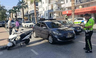 Antalya'nın Manavgat ilçesinde meydana gelen kazada, bir motosiklet sürücüsü dönen bir otomobile çarparak yaralandı.