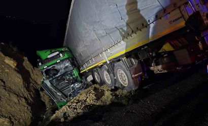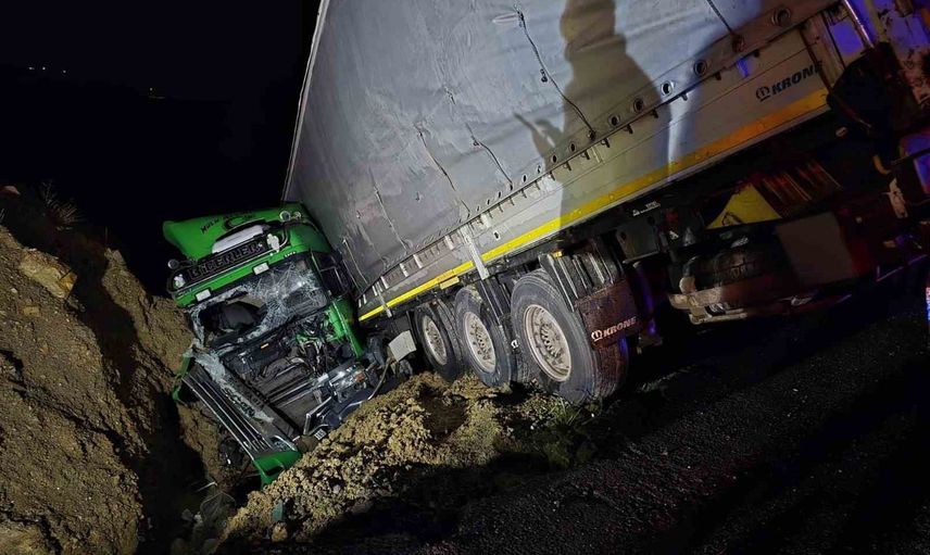 ANTALYA’NIN MANAVGAT İLÇESİNDE TÜNEL GİRİŞİNDE SÜRÜCÜSÜNÜN DİREKSİYON HAKİMİYETİNİ KAYBETTİĞİ TIR ŞARAMPOLE YUVARLANDI. ARAÇ İÇERİSİNDE SIKIŞAN VE AĞIR YARALANAN SÜRÜCÜ JANDARMA, İTFAİYE VE AFAD EKİPLERİNCE BULUNDUĞU YERDEN ÇIKARILARAK HASTANEYE KALDIRILDI.
