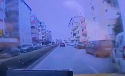 Otomobil, ticari taksi ile çarpışarak kazaya sebep oldu. Kaza anı, güvenlik kameraları tarafından saniye saniyesine kaydedildi. Çarpışma sonucunda her iki araçta da hasar oluşurken, şans eseri kazada hiç kimse yaralanmadı.