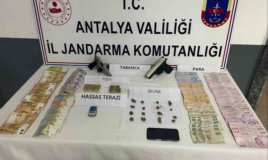 ANTALYA’NIN MANAVGAT İLÇESİNDE DÜZENLENEN UYUŞTURUCU OPERASYONUNDA ÇEŞİTLİ UYUŞTURUCU MADDELER, SİLAH VE PARA ELE GEÇİRİLDİ.