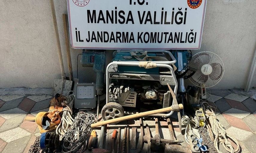 Manisa'nın Soma ilçesinde jandarma ekiplerince düzenlenen operasyonda kaçak kazı yaptıkları öne sürülen 10 kişi suçüstü yakalandı. Operasyonda, yakın döneme ait olduğu değerlendirilen 66 eser, 1 projektör, 2 hilti ve jeneratör ele geçirildi.
