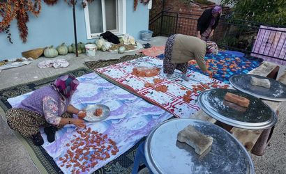 Manisa'nın Demirci ilçesinde, soğuk havalarda tüketilmek üzere, günler süren çalışmayla 16 çeşit malzemeden tarhana yapılıyor. İlçeye bağlı Akdere Mahallesi'nde kadınlar, kış mevsiminin yaklaşmasıyla imece geleneğini sürdürerek kışlık yiyeceklerini hazırlamaya başlıyor.