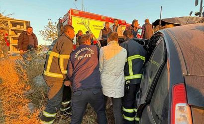 Mardin'in Kızıltepe ilçesinde meydana gelen bir trafik kazasında, şarampole yuvarlanan otomobildeki 3 kişi yaralandı.