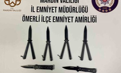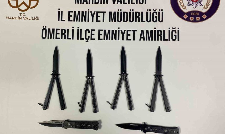 Ömerli İlçe Emniyet Amirliği'ne bağlı ekiplerin düzenlediği denetimlerde, seyyar satış yapan bir şahsın tezgahında 4 adet kelebek bıçağı ve 3 adet sustalı bıçak bulundu. Bu bıçaklar hemen muhafaza altına alındı.