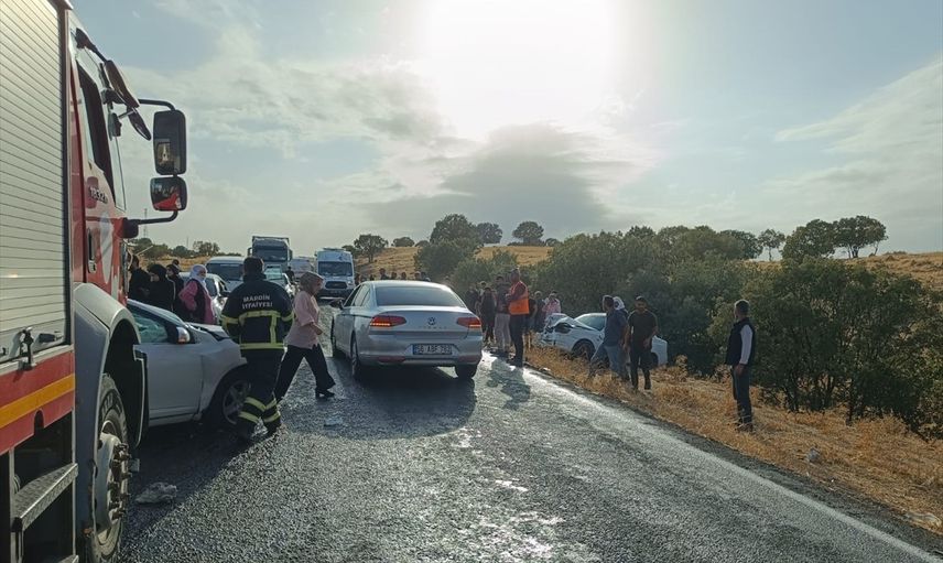 Mardin'in Mazıdağı ilçesinde 2 otomobilin çarpışması sonucu 1'i ağır 4 kişi yaralandı.